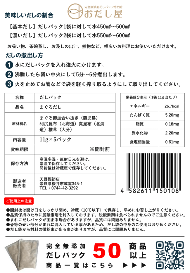 まぐろ節のうま味と、昆布と椎茸のうま味が合わさった美味しいだしになっています。