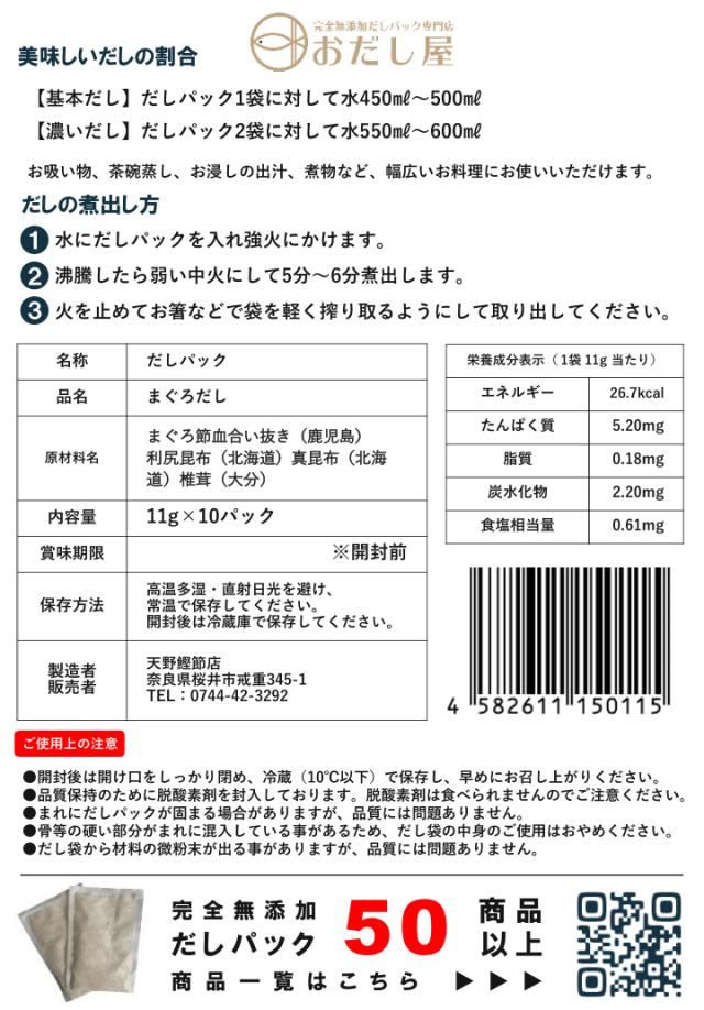 まぐろ節のうま味と、昆布と椎茸のうま味が合わさった美味しいだしになっています。